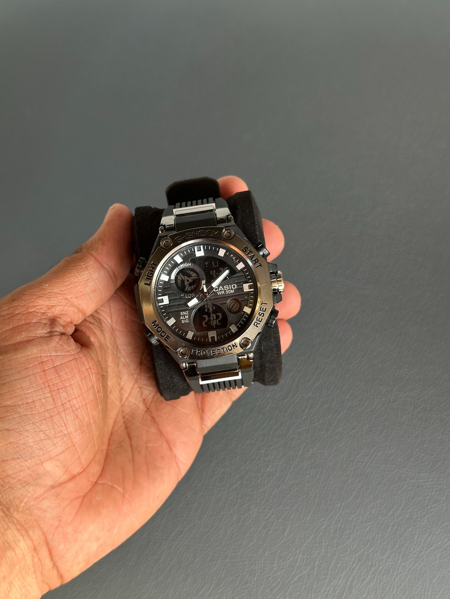 This is one of the stylish Sports Multi-function Outdoor Sports Men's Analog & Digital Electronic Watch, A watch with stylish sporty look wearing with popular design for our beloved and valuable customers, its digital and have Luminous, Week Display, Alarm, Month display, Date, Chronograph, Calendar 24 hours indication, Stopwatch, day function, 12/24 hrs. format. It can be used while running and with other sports activities and for business and casual wear as well. The round Dial diameter is 42 mm and with 14 mm thickness. it has high-quality stainless-steel pin buckle clasp and strap material is consist of Thermoplastic Polyurethane Elastomer Rubber.